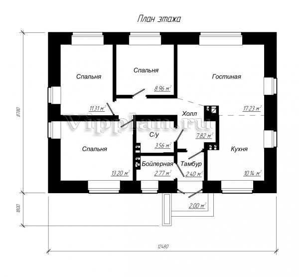 | Размеры дома: | 12.48м×8.78м |