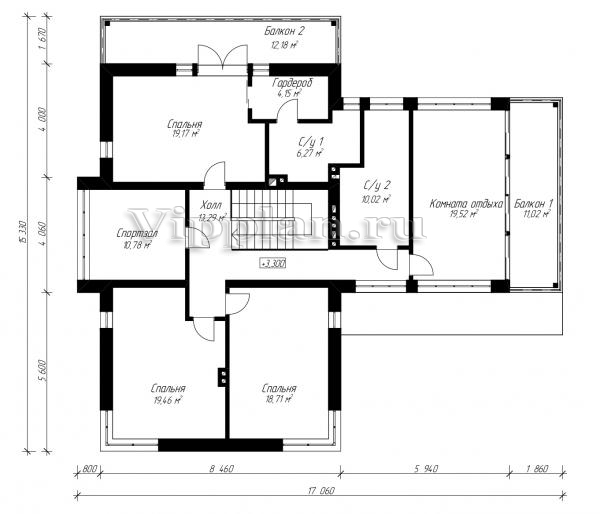 | Размеры дома: | 18.5м×17.06м |