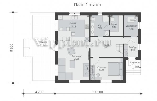 | Размеры дома: | 9.5м×11.5м |