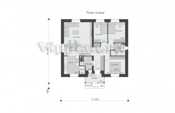 | Размеры дома: | 11.52м×10.99м |