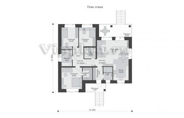| Размеры дома: | 14.35м×13.35м |