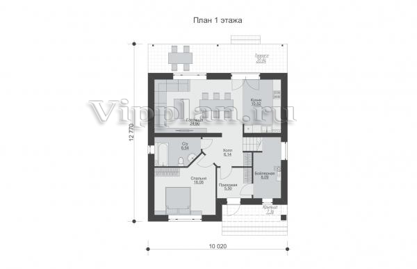 | Размеры дома: | 10.02м×12.77м |